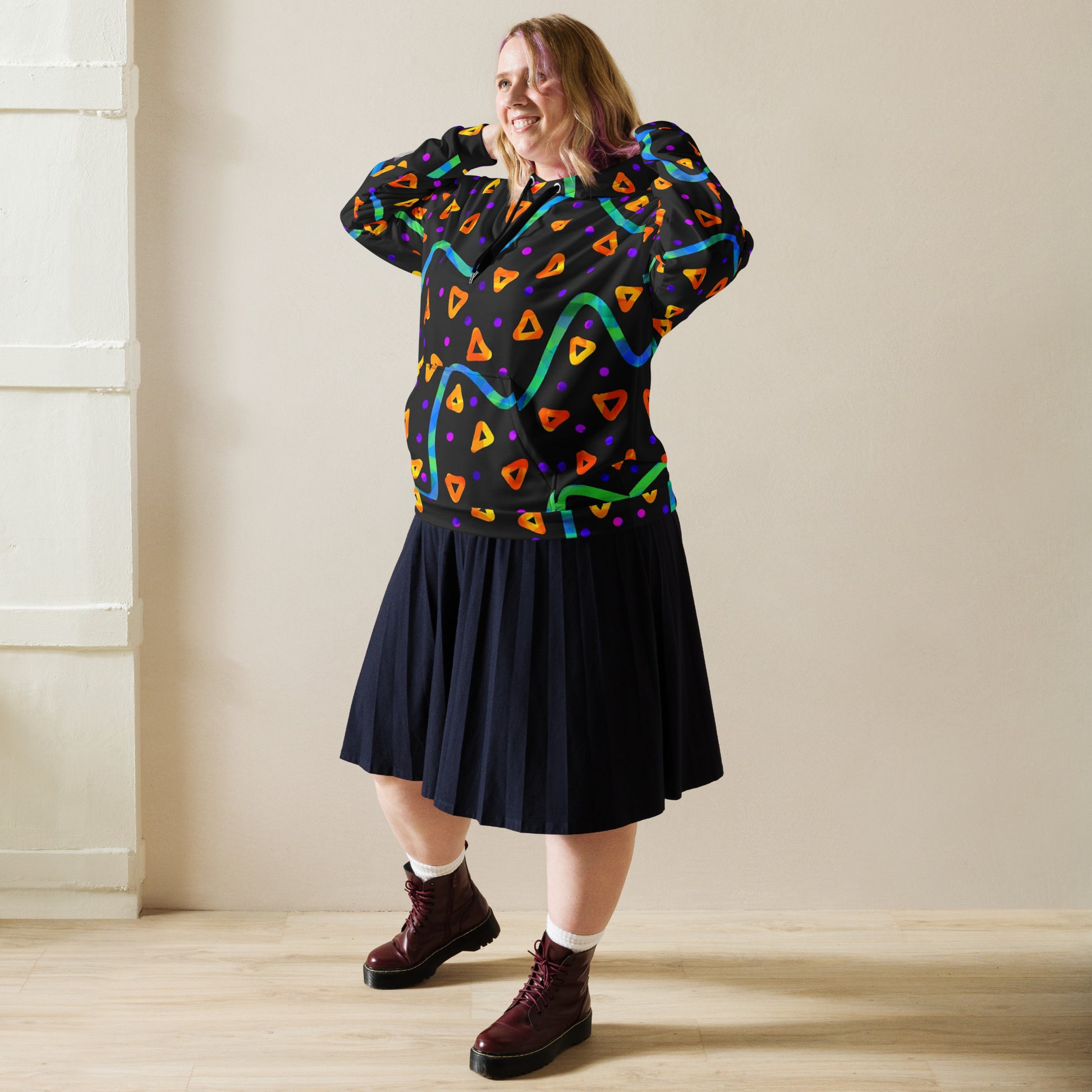 This comfy unisex hoodie has a soft outside with a vibrant print and an even softer brushed fleece inside. The hoodie has a relaxed fit, and it’s perfect for wrapping yourself into on a chilly evening.